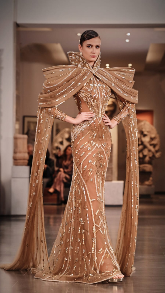 feminine resilience, identity, and transformation. Ajaj introduced 27 couture gowns that